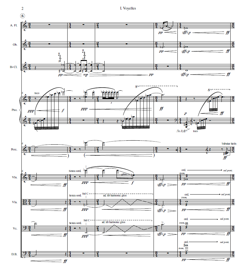 For flute, clarinet, bassoon, horn, 2 violins, viola, and cello; Reflections on a Madrigal of Carlo Gesualdo; commissioned by Tetractys New Music; Premiered November, 2015 in Austin, TX