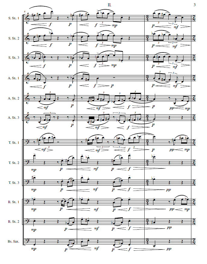 for Saxophone Quartet (SATB); Two movements; Approximate duration: 8:30